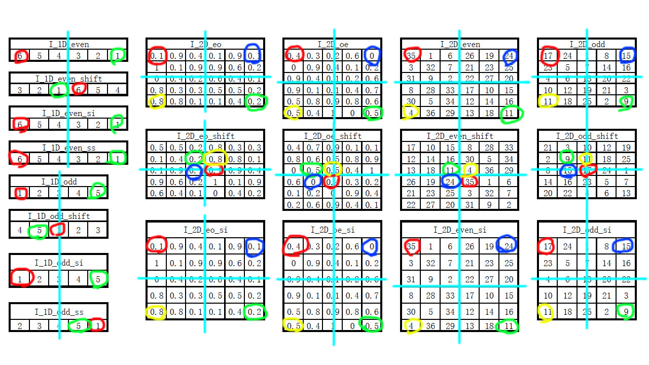 细心的朋友可能已经注意到了,上一节傅里叶变换的公式中采用的累加区域是[0, M-1]、[0, N-1]、[0, m-1]和[0, n-1],并非采用1为起点来构造函数,这是因为在傅里叶变换的过程中是把一个有限的区域视作一个圆周,每相邻两点间的夹角经过一周会构成一个完整的圆。(具体的可视化过程我会在后面的章节或者文章中反复提出,这里只是使用它的结论)采用0作为基点表明0处是一个周期的中心部分,然而对于离散的线段而言,中心的位置有可能在一个离散点上,也有可能在两个点的中间,无取值处。所以,把一个这样的周期段位置中心化就用到了shift的计算(shift是傅里叶变换的一个性质,会在Fourier_02探究性质的过程中提到),而对应这两种中心不同的方式,以及shift操作的还原情况我们采用了以下代码来验证: