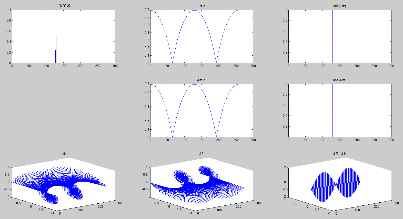 subplot(339);plot3(1:1:256, real(sub_8), imag(sub_8));title('J-fft - J-ft')